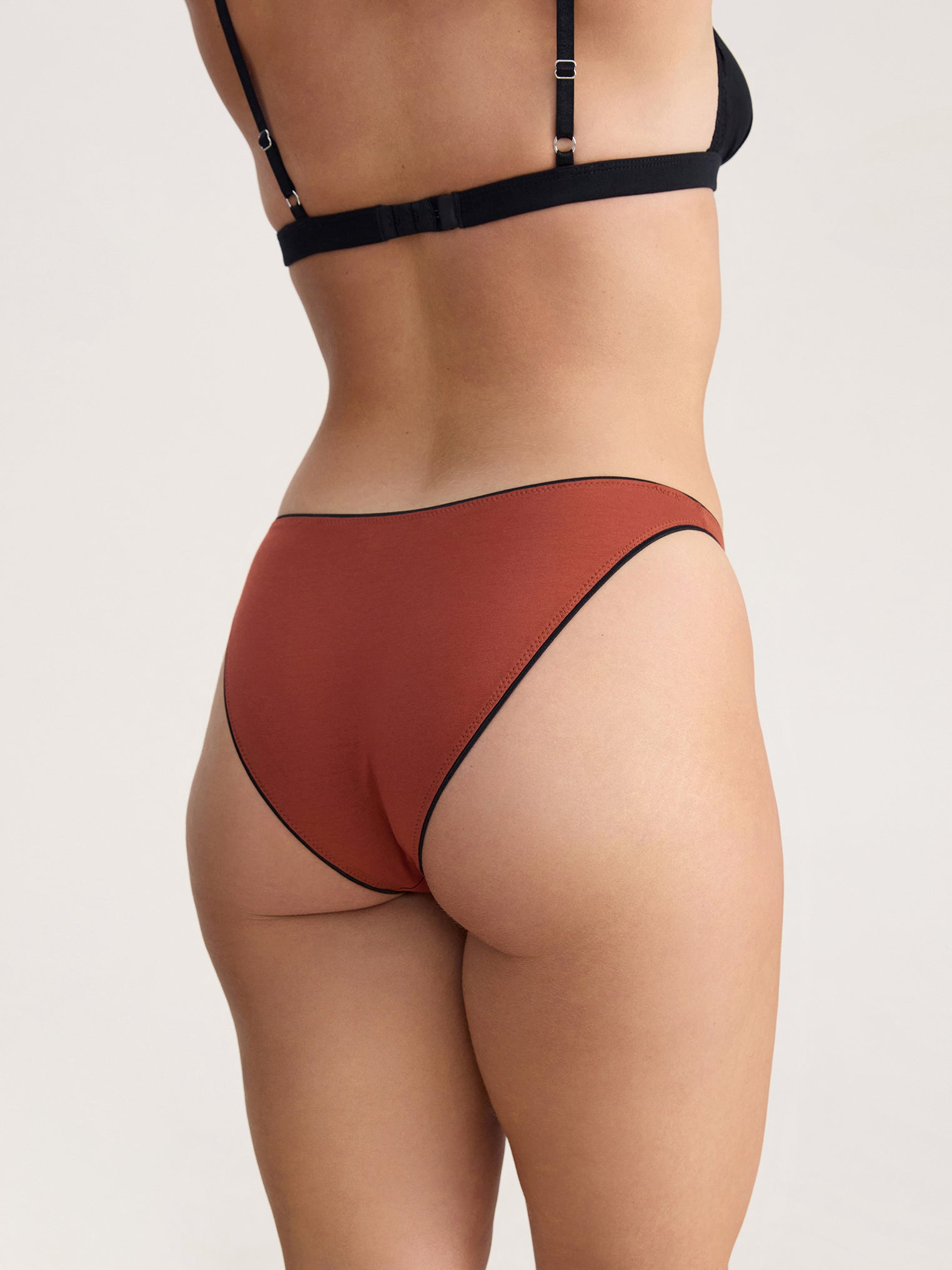 Мініатюрні бікіні з натуральної бавовни — ідеальна білизна на кожен день. Комфортна посадка та делікатна обробка м’якими резинками контрастного чорного кольору.